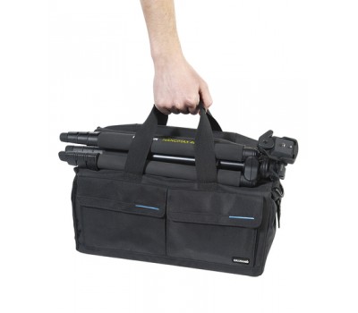 All zips are concealed and waterproof. A tripod is secured in place with the stable fastening loops. The robust strap on the bag makes it suitable for transportation on a trolley. There are also large area resting feet on the bottom of the bag.