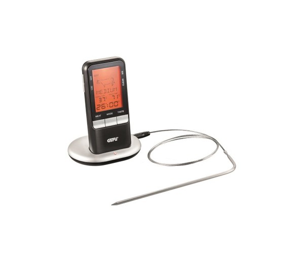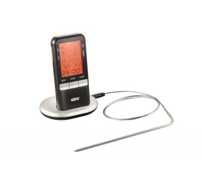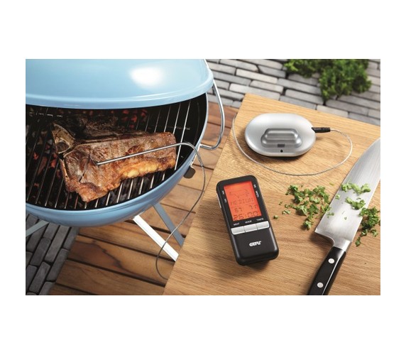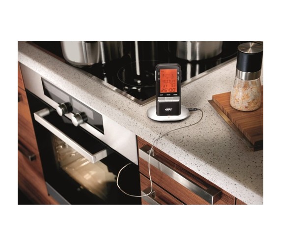 Cook and roast with precision! Enjoy the ease and autonomy that cooking or roasting with the digital radio roast thermometer brings. You will constantly receive updates on the temperature which will be displayed on the hand device and received by radio. As soon as the meat is cooked as well as you want it, a signal will sound. Using the roast thermometer you can access pre-programmed cooking times for different meats. The integrated timer serves as a tool for the precise preparation of other dishes.