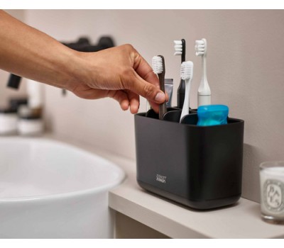 These toothbrush caddies have different sections for organising a variety of oral care items such as manual or electric toothbrushes and toothpaste tubes. Sorted.