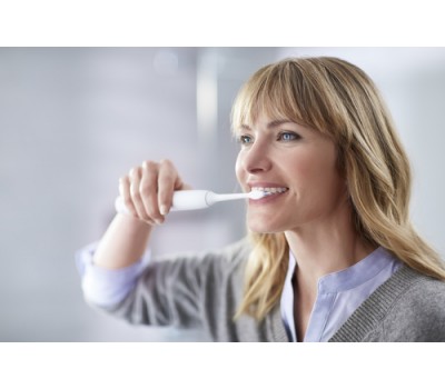 Feel the difference of a gentle clean with our Pressure Sensor while whitening your teeth in 1 week.