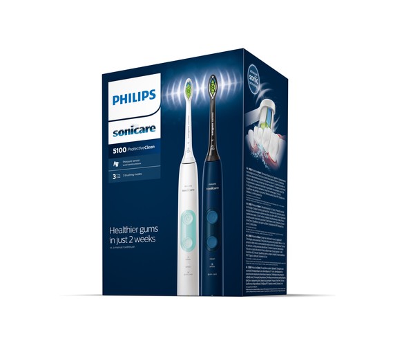 Philips Sonicare ProtectiveClean 5100 ProtectiveClean 5100 HX6851/34 2-pack sonic electric toothbrushes with accessories (HX6851/34)
