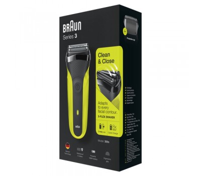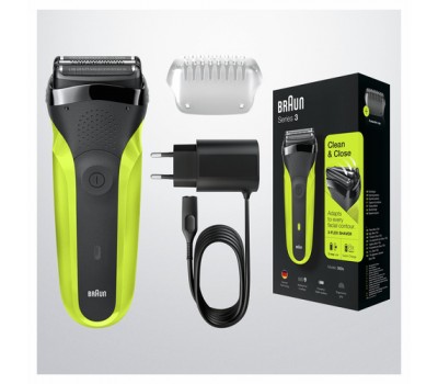 Braun Series 3 300 Electric Shaver, Razor for Men, Black/Volt Green (276326)