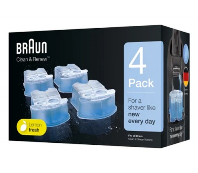Braun Clean & Renew cartridges will keep your electric shaver feeling like new. The alcohol-based solution cleans more hygienically than water, removing residual hair and skin particles that cumulate after every shave. High energy lubricants maintain your shaver's blades and help reduce friction, which may cause skin irritation. The lemon-fresh formula releases a refreshing scent, giving you an invigorating shave every time. The Braun Clean & Renew cartrigdes are compatible with any SmartCare Center unit.