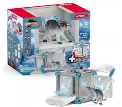 The Ice Rat looks really mean waiting there, next to its BattleCave. Its piercing cold eyes look closely at anyone wanting to pick a fight and steal the Ice Crystal from the BattleCave. Above the BattleCave, a dangerous ice slingshot is circling on a long chain, hitting anyone who dares to come close. But even if you manage to overcome the obstacle you are still far from having made it. To get the Ice Crystal, you have to go into the BattleCave. But a trap awaits: In a flash, sharp shards of ice flip up to deny access. Will anyone succeed in defeating the Ice Rat? The ELDRADOR® CREATURES BattleCaves will transform every children's room into an action zone! Who will face the breathtaking battle? All BattleCaves can be combined. Scary tunnels, and tricky traps await the attackers. In the big arena they can then meet for the final duel. What a fight!