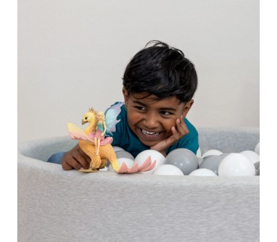The magnificent Phoenix majestically spreads its wings. Is it about to take into the skies? From up there, it has all of BAYALA® in its sights. Nothing escapes its large, dark eyes. The awe-inspiring silhouette can be seen from near and far as it circles in the sky. Its plumage is such a bright yellow that it competes with the sun, and the tips of its primary feathers have a reddish tinge. Landing, it fans out the magnificent tail feathers and looks around inquisitively with a friendly gaze. Where are its playmates?