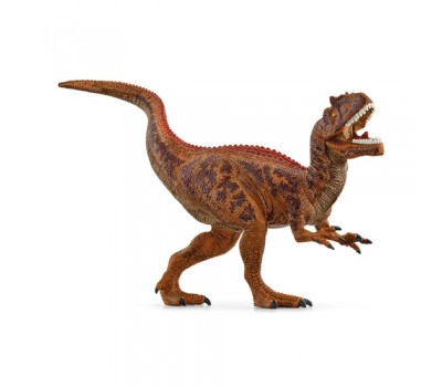 Allosaurus' patterned lizard skin looks like a camouflage suit. That's pretty practical since the giant carnivore is almost always on the hunt. On two legs, it can run unbelievably fast through the jungle and can easily catch up with any prey. There's no escape from its powerful jaws and sharp teeth. It can even take on other dinos.