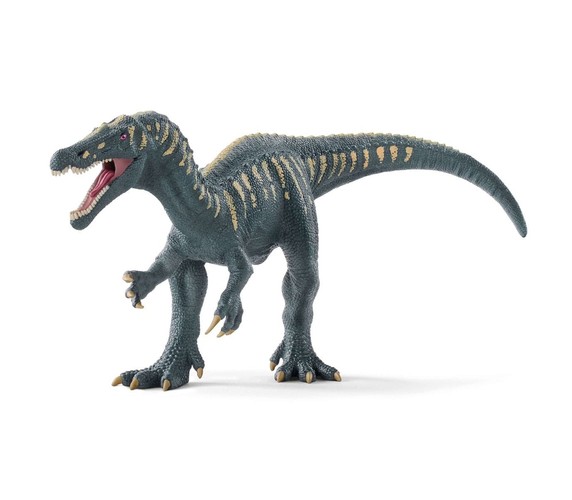 The long, narrow and flat head of the baryonyx from schleich® DINOSAURS is similar to that of a crocodile, making it an especially exciting prehistoric reptile. This dinosaur is believed to have hunted primarily in the water, and could immerse its perfectly shaped snout into the water to catch fish. It also had unusually large and heavy hook-shaped thumb claws to grab prey.
