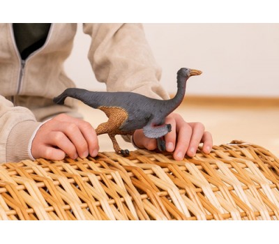 Watch out! The Gallimimus is about to run by! Yikes - it's disappeared again! The dinosaur can run so fast that you can easily lose sight of it. Maybe that's why you should keep it close. That way, you can take your time admiring this dino, which has feathers on its front legs, an elegant long neck and a thick beak, like a bird. It can't fly, but the Gallimimus doesn't need to, because it can just run away at lightning speed instead!