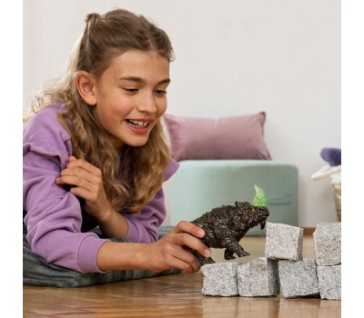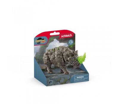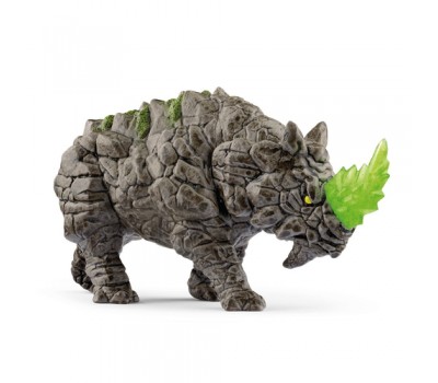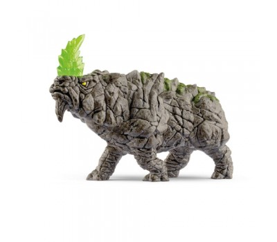 You can tell right away that the Battle Rhino is from the Stone World. Its body armor looks like it's made of hard rock. Isn't that even a bit of moss growing on its broad back? Moving its head up and down, it's on the look out for enemies. It is happy to take anyone on with its pointed horn. It's dangerously serrated, transparent with a greenish shimmer. Better keep your distance!