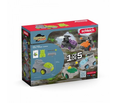 Help, the little MINI CREATURE is motorized! Just watch out! In its Stone Crashmobile, it races through ELDRADOR® at full speed. It can shoot dangerous arrows with its firearm, but mostly it prefers to ram its opponents first. Meanwhile, it sits snug and safe in the Crashmobile and survives every collision unscathed. Cool action vehicles for the next MINI CREATURES attack on ELDRADOR®! Equipped with a friction motor, the MINIS jet through the five worlds as fast as little rockets. Thanks to the revolving shooting function, they are well equipped for any battle. Available in five colors!