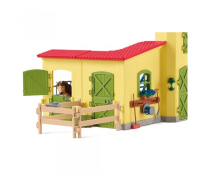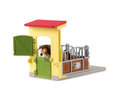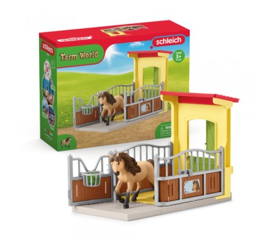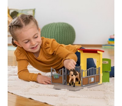 The Iceland Pony stallion feels safe and warm in this pretty pony box from schleich Horse Club. Decorate it your way with the included stickers, then invite the Iceland Pony stallion out for a trot around the farm and some apples for nibbling.