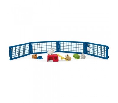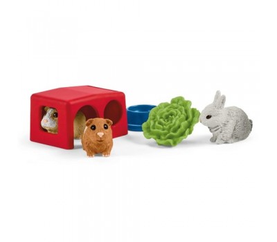 - 2x guinea pig, 2x rabbit, 1x hutch, 1x seesaw, 1x bowl, 1x water bottle, 1x salad, 5x fence