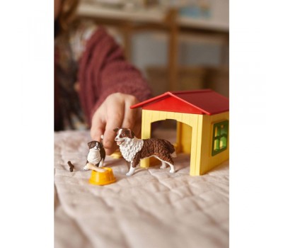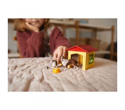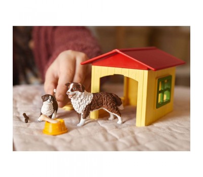 Woof woof! The Australian Shepherd puppy is a sleepy-head! Will you teach the puppy how to play fetch? C'mon, let's go visit the farm animals…maybe we'll see the new piglet or find the lamb napping in the meadow. The Friendly Dog House playset is easy to assemble – everything pops into place – so little ones can spend more time playing and dreaming about life on the farm with their favorite pup.