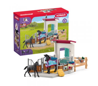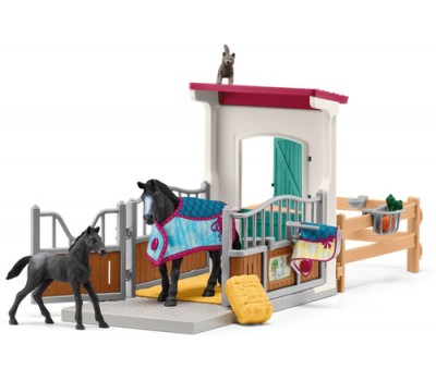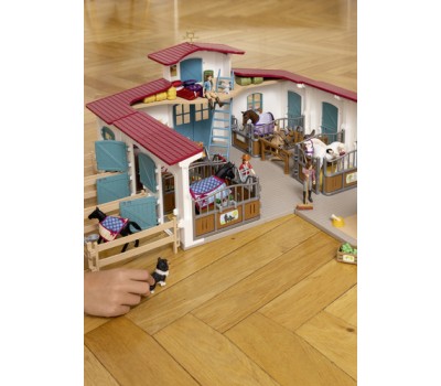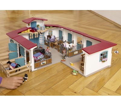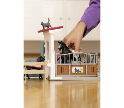 You'll find everything you and your beloved Appaloosas need in this playset, including a drinking trough, hayrack and matching horse blankets. The saddle and bridle fit on the the saddle rack, while the paddock offers plenty of space for the mare and foal to get fresh air. Modular design makes it easy to combine with other schleich®HORSE CLUB playests.