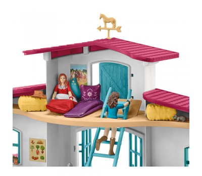 Yaaaaaawn! Wake up, sleepy head! While you've been snoozing in the loft, other equestrians at Lakeside Riding Center have been getting time in the saddle. Shimmy down the ladder and hurry to the stalls, where your horse is nibbling hay and waiting patiently. Ooooh, maybe after practicing your saddle gait you could take a trail ride to the Rider Café (playset sold separately) for a slice of fresh-baked apple pie! It's gonna be a fully day at Lakeside!