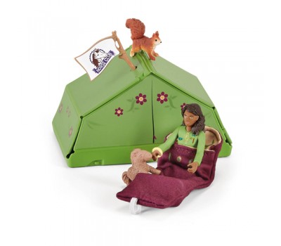 Where will Sarah's camping adventure take her today...a forest in the mountains? A wind-swept meadow in the valley? Adventure awaits in the great outdoors! The Camping Adventure playset makes a great gift to expand your schleich® HORSE CLUB collection. The playset comes with a toy tent and fun accessories like a sleeping bag, a playful squirrel, apples for Sarah's horse and more. You can even personalize Sarah's tent with the flower stickers that come with it. Combine this playset with our Camping Accessories kit (sold separately) for even more fun and adventures. schleich® HORSE CLUB playsets and figurines introduce the limitless possibilities of storytelling and imaginative play. Featuring dozens of toy horses, riders and accessories, schleich® HORSE CLUB lets your adventure stories run wild. Horse figurines canter in rich detail, while authentic playsets provide an always expanding setting for the adventures of Hannah, Sofia, Lisa and Sarah! Our horse and rider figurines love to be whisked away into stories featuring other schleich® play worlds, from the grasses of the savannah to the majestic pines of the forest! schleich® toys and playsets are built to last for generations. All our toys meet the highest national and international safety standards.