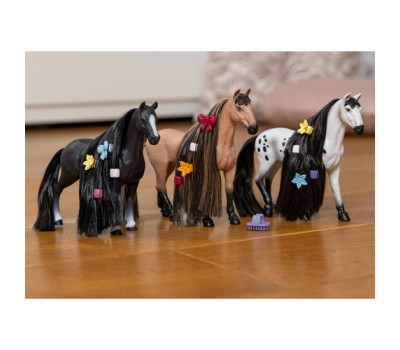 Decorate your Beauty Horse Quarter Horse with hair beads and flowers. Tres chic! You can even swap your mare's mane and tail with interchangeable schleich® hair kits (sold separately).