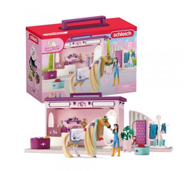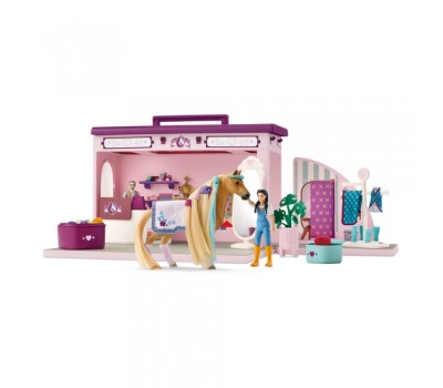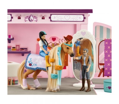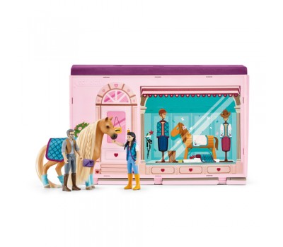 Oooooh...that French braid looks so pretty on your horse! And look at these adorable hair clips! The city is buzzing about the new pop-up shop opening across from City Park. It's a horse lover's dream! With a toy horse, a horse grooming station, checkout counter, and more than 20 accessories, its no wonder the Horse Pop-Up Boutique playset is on everybody's schleich® wish list.