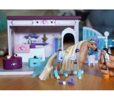 You love pampering your horse...Mr. Mitchell's Pop-Up Horse Grooming Boutique is the perfect destination! Sofia's Beauties visit the pop-up shop in the city to make new friends and to give their horses a little TLC. Loaded with horse beauty accessories, the Pop-Up Horse Boutique playset is the go-to spot for horse fashion!