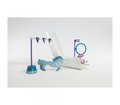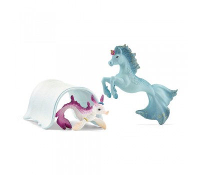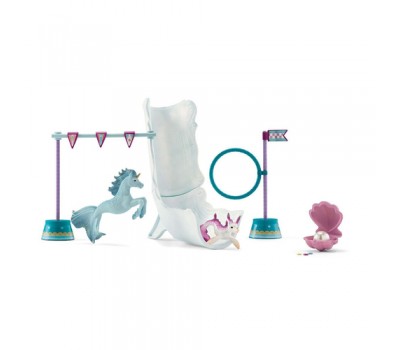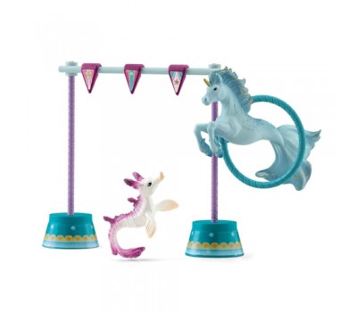 Two beautiful mythological creatures are competing in a test of aquatic agility and speed. In lane 1, it's the unicorn with the tail fin of a mermaid. In lane 2, it's the hippocampus – part horse, part fish. They crouch eagerly at the starting line. A gurgle of bubbles signals the start of the race...and there they go! Who will win this underwater obstacle course? You decide!
