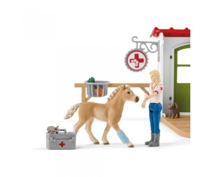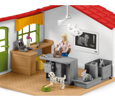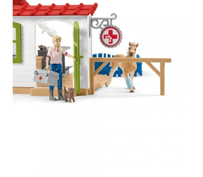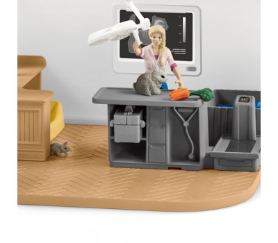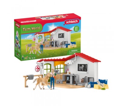 In the veterinary practice from the schleich® FARM WORLD the vet treats every animal that comes to her. The professional equipment in her practice means that all her little patients recover quickly and can go back home to the farm.