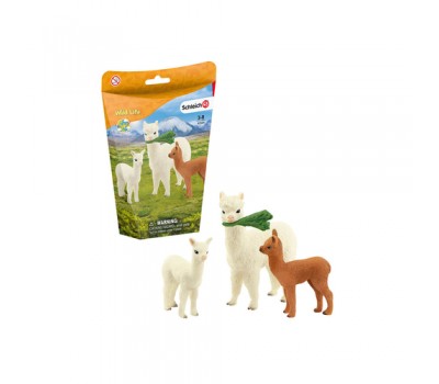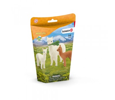 The animals in the Alpaca Set from Schleich® WILD LIFE come from the South American Andes, where they are bred for their soft, warm wool. They are hump-less camels with a calm and friendly temperament. The two young animals have different coats: One is white, the other brown. They are suckled by their mother for 6-8 months before starting to eat grass.