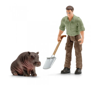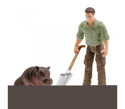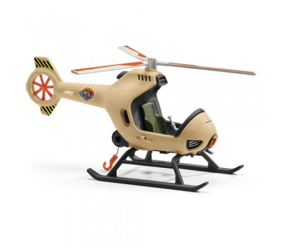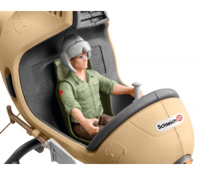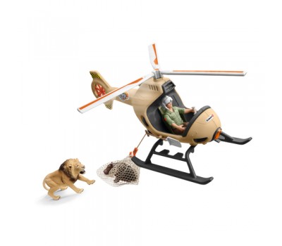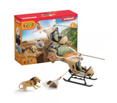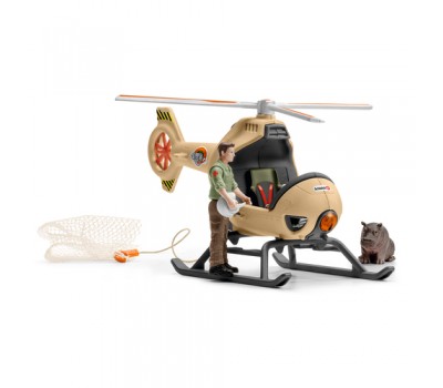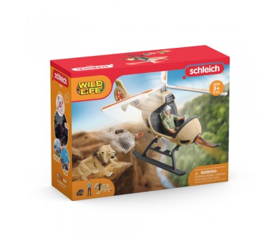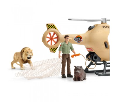 In the new animal rescue helicopter from schleich® WILD LIFE, the ranger can rescue the hippopotamus calf in a deep canyon from the lion. The ranger uses a cable winch to lower the transport net down from the helicopter. The young hippopotamus calf climbs into the net at the last moment and the ranger flies it away from the lion in no time. The rescue was successful!