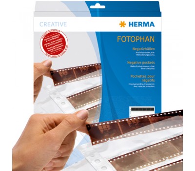 - Negative pockets for perfect protection against dust and fingerprints. The safe way to archive valuable negatives. Fully transparent, in clear polypropylene. Safety tab prevents negatives from falling out. Indexes for filing included. Laboratory-tested - free from plasticizers and archive-safe. With Euro-standard holes, suitable for HERMA ring binderalbums and all standard files.