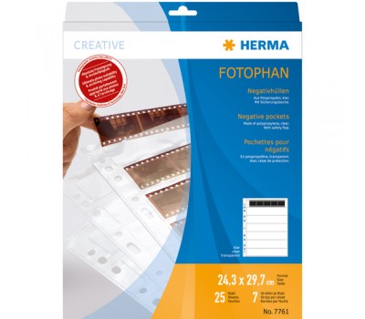 - Negative pockets for perfect protection against dust and fingerprints. The safe way to archive valuable negatives. Fully transparent, in clear polypropylene. Safety tab prevents negatives from falling out. Indexes for filing included. Laboratory-tested - free from plasticizers and archive-safe. With Euro-standard holes, suitable for HERMA ring binderalbums and all standard files.