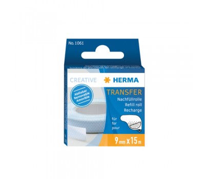 Permits removable glue-spots in strips of any length to be accurately transferred by simply unrolling the 15m long strip, straight on or in outline. Suitable for removable mounting in the office, household or handicraft for photos, receipts, cuttings, presents etc. Residual glue can simply be rubbed off. The adhesive is solvent- and acid-free. With the practical HERMA Transfer refill roll the dispenser is ready for use immediately again: Open dispenser, insert refill roll, close - ready.