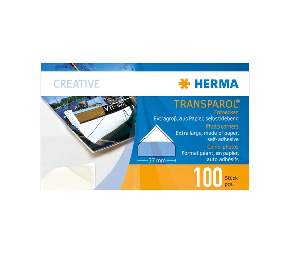 - Self-adhesive photo corners for mounting large photos, philatelic sets or exhibits. Almost invisible, thanks to transparent jutted retainers. Photos can be removed and replaced whenever required. Solvent-free adhesive.