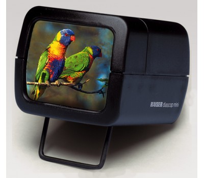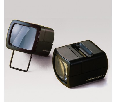 Small compact slide viewer for framed slides 5 x 5 cm (2 x 2 in.). With hinged prop.