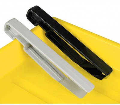 Made of chemical-resistant plastic; self- opening. Molded tray edge recess. One pair of different-coloured print tongs.