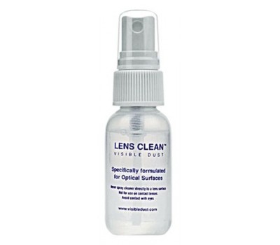 Lens Clean™ is distinctly prepared to safely remove finger prints and water/oil based contamination from optical surfaces without streaking. Most Lens cleaning solutions are alcohol based. Alcohol by itself is not suitable for remove stains/spots and may leave streaks behind. Use Lens Clean™ with VisibleDust micro-fiberMagic Cleaner or other lint-free cloth. This 30ml size lens cleaner is conveniently portable.