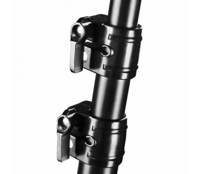 The tripods are very compact and portable at a weight of only approx. 2-2kg and a transport length of approx. 109 cm each. Due to its compact transport size they are particularly easy to stow away and transport. For this reason they are also very well-suited for smaller studios. That way plenty of space remains for other equipment. A transport bag is included for each tripod.