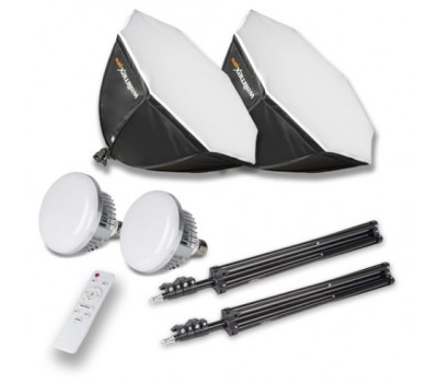 The inexpensive and complete lighting solution with modern LED technology: The complete continuous light set consists of 2x 60W Bi Color LED, 2x Octagon softbox with Ø 65 cm, 2x matching diffuser, 2x lamp stand as well as a bag and remote control. The lamp stand has a spigot connection and is flexibly adjustable from 71 to 182 cm height. With this, nothing stands in your way to create perfectly illuminated photo as well as video shoots.