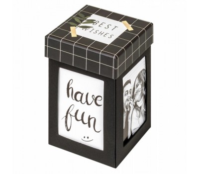 Modern photo gift box as an explosion box for (instax) pictures. The creative box is made of black, acid-free photo cardboard and has a color-printed lid. It offers space for 25 free design areas. Four photos can also be inserted on the outside. Format: 8.5 x 8.5 x 13.5 cm.