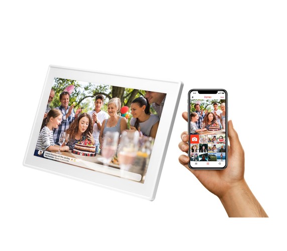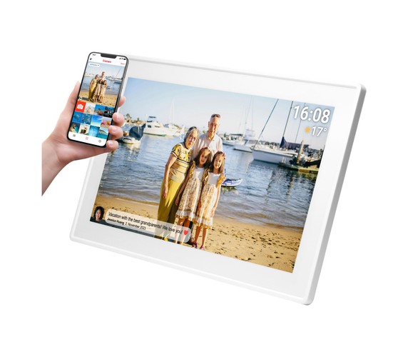 Immerse yourself in the vibrant clarity of the Denver PFF-1515W, a 15.6” digital Wi-Fi photoframe that brings your cherished moments to life with its stunning FULL HD IPS touchscreen.