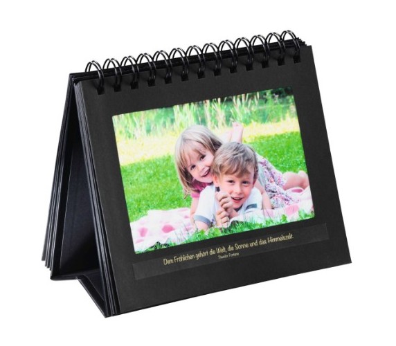 - Slide your most beautiful pictures from the side into the stand, 12 leaves each for one photo measuring 11 x 15 cm.