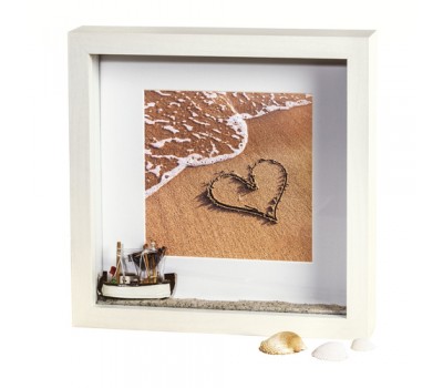 - It does not always have to contain a photograph: the 3D frame can be decorated with small holiday souvenirs, decorative materials and a labelled mount, for example