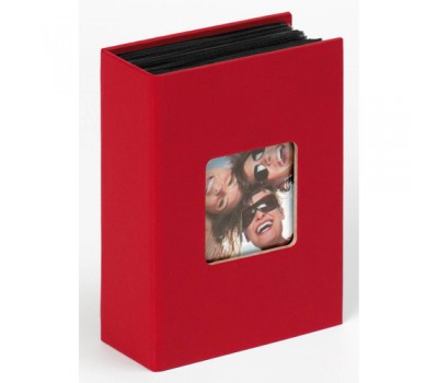 Minimax slip-in albumFun, red Minimax slip-in album with high quality hardcover and black pages. It is ennobled with a square die cut for your personal photo. The album is designed for 100 photos of size 10 x 15cm (4 x 6 inch) in portrait format, available in different colours. Packaging: shrink wrapped.