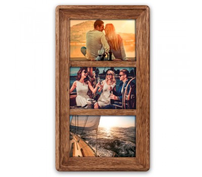 Rhone brown wooden frame,multiple photo frame in table and suspension versions for 3 photos, suitable for home and office