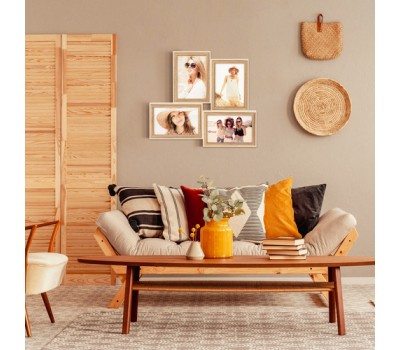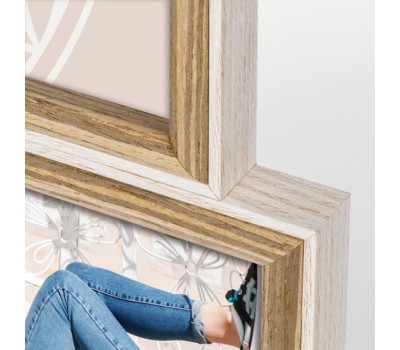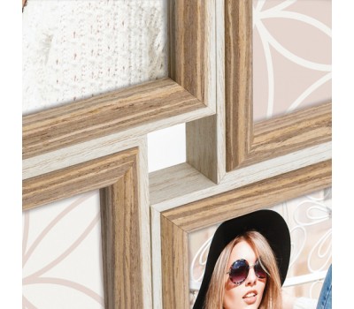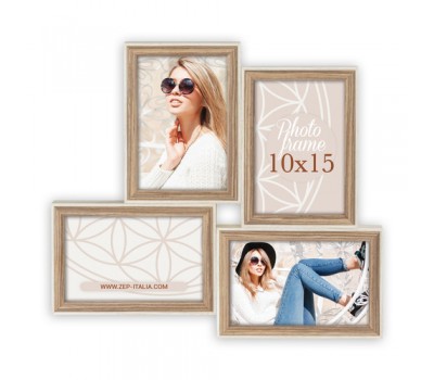 Kriss 4Q wooden frame, white and brown color, wall-mounted multiple photo frame, for 4 photos, classic profile, suitable for home and office, original gift idea.
