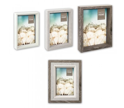 Cornici Trilogy 3 in legno, brown color, grey and white, kit of 3 stacking pieces with different dimensions, in table and suspension versions, suitable for home and office
