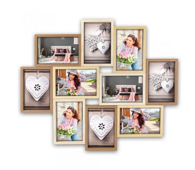 Montreaux 10 Q wooden frame, brown, beige and white color, wall-mounted multiple photo frame, composed by horizontal and vertical frames, for 10 photos, suitable for home and office