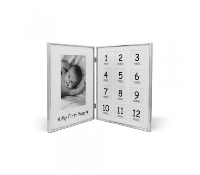 Your child's first year is very special indeed! Wouldn't it be fun to keep this year's photos in a lovely photo frame? This frame can fit one large photo and 12 little ones. The silver-plated lacquered border gives it a luxurious look.