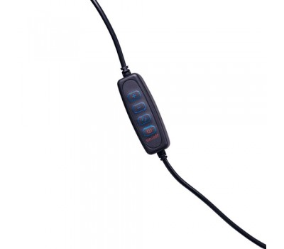 The LED ring light is powered via USB connection (5V, 2A) - so simply connect it to the USB socket of your PC/Notebook/Laptop. With a length of 140 cm the USB cable ensures a great motion range between the light and the USB power source.
