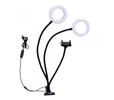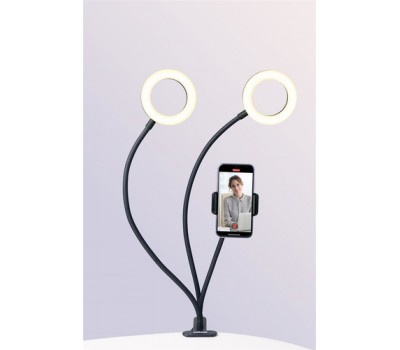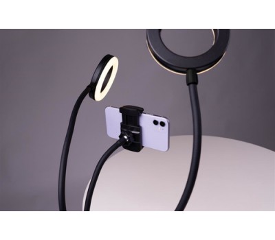 The DÖRR double ring light SLR-12 Bi-Color ensures a perfect illumination from two sides for your selfies, photos and videos. Thanks to the flexible arms, the two ring lights can be aligned quickly to achieve an optimal lighting of your subjects. Especially if you wear glasses, you may minimize or completely prevent reflections in the glasses by cleverly arranging the two light sources. With the universal smartphone holder, also your smartphone can be positioned easily.