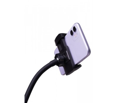 The robust smartphone holder fits for smartphones with a width of 60 to 90 mm. Your smartphone is simply inserted between the two rubberised clamps. To align your smartphone and the ring lights, bend the corresponding flexible gooseneck into the desired position.