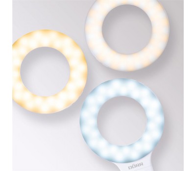 The LED selfie ring light is equipped with 30 cold white and 30 warm white, high-quality LEDs. The ring-shaped arrangement of the LEDs creates a natural, round light reflection in the eye. The selfie ring light also offers 3 light modes which can be adjusted easily using the integrated control buttons:
